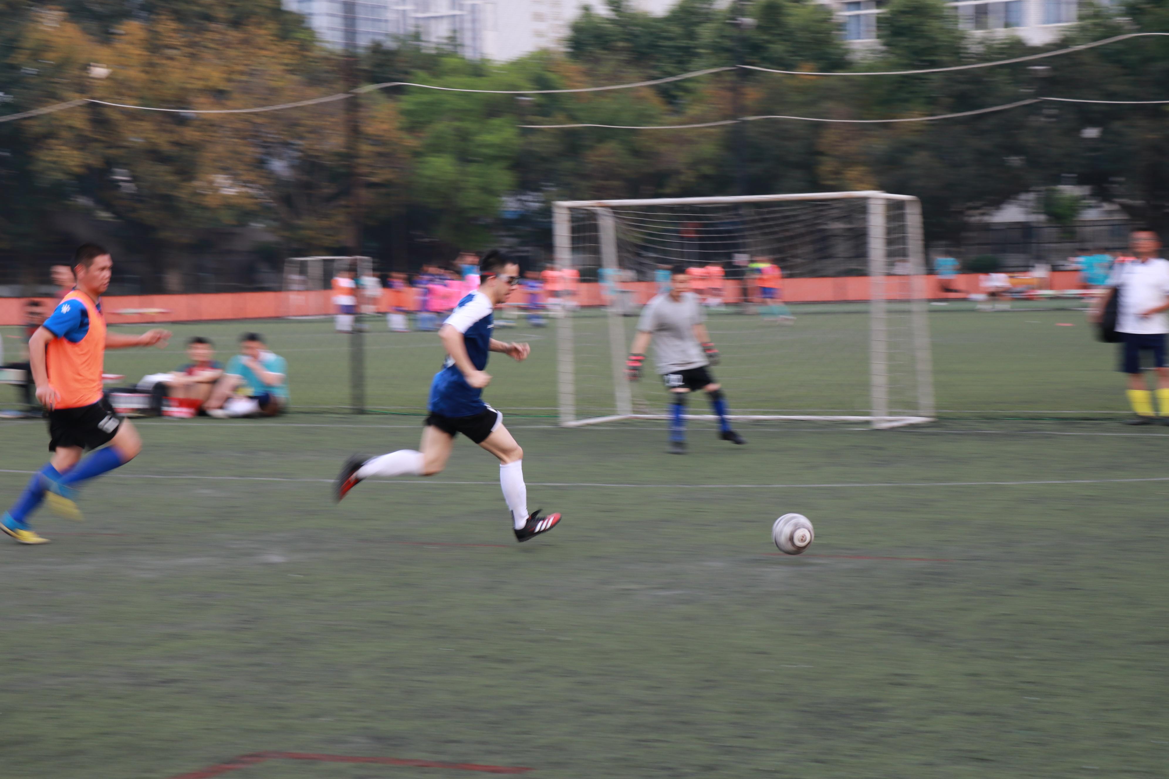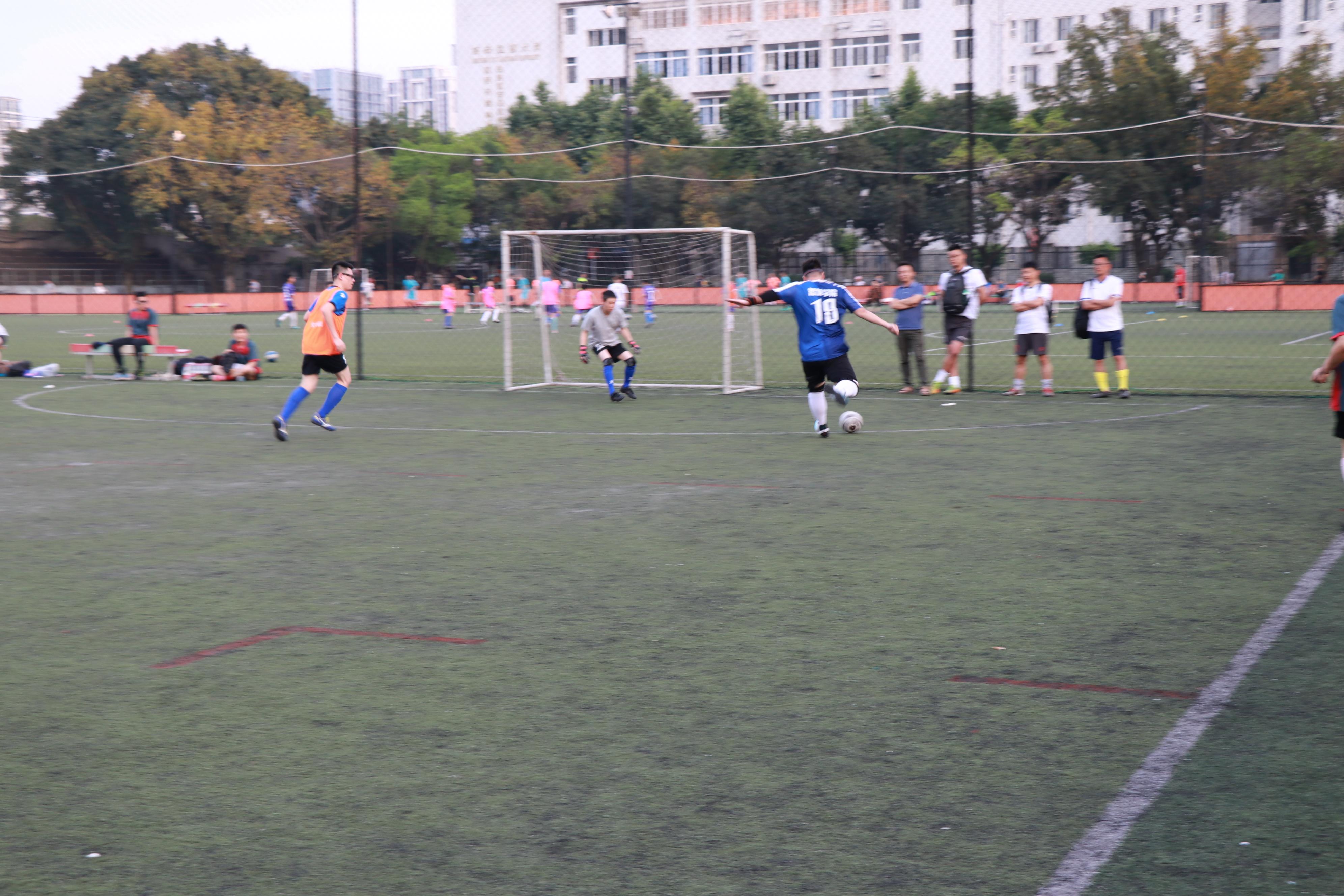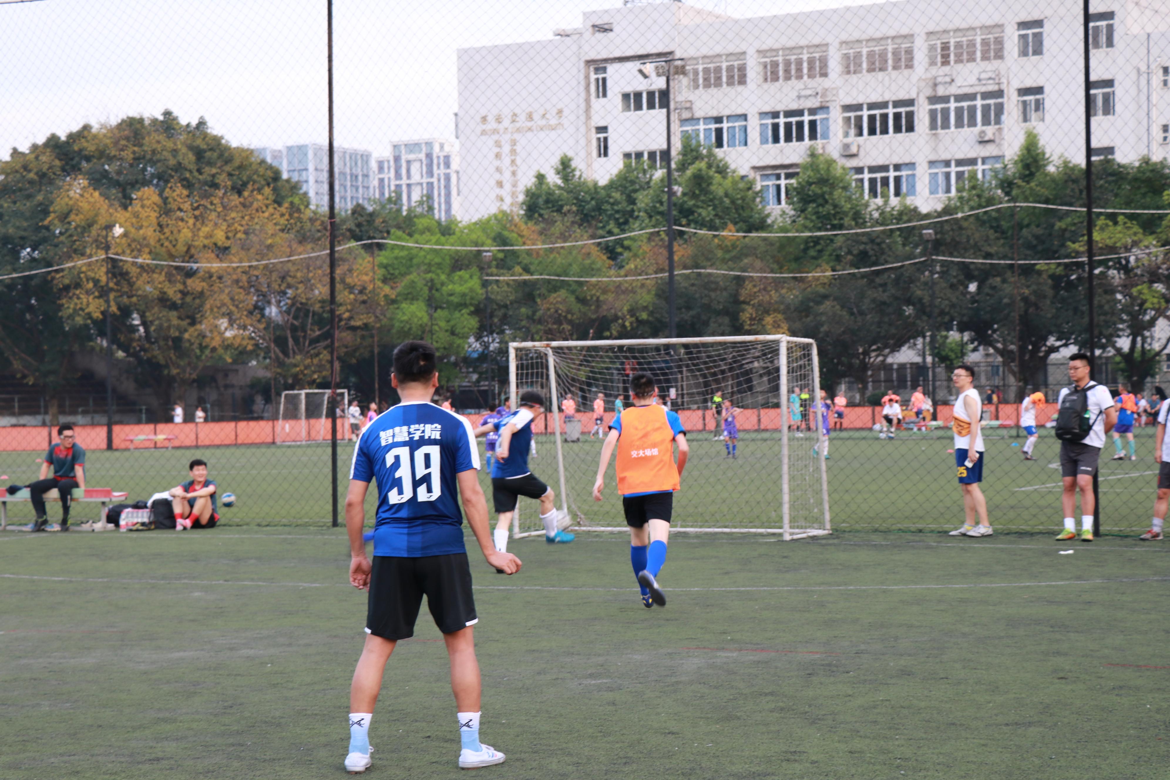 面对强敌,球队按照既定战术安排,通过加强传导配合和跑动穿插,39号邓军、66号赵周鉴、8号俞建海先后进球,取得3-0领先。随后交运学院加强攻势,在难以突入我方禁区的情况下通过远射打入2球。上半场结束我院以3-2领先。