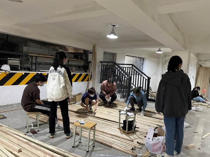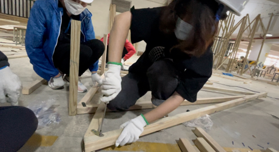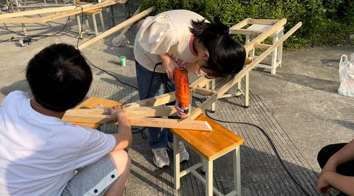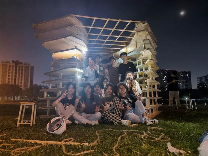 作为一次小组作业,我们从中体会到了团结协作的重要性。短短7天的搭建,从材料进场到各结构单元的打造再到最后的拼接整合,环环相扣,一步都容不得疏漏。作为一次劳动过程,我们从中深切体会到了劳动之美的含义:劳动之美不仅美在劳动的成果,更重要的是专注投入的劳动过程本身。作为一次美育和建筑设计“初体验”,我们从中体会到了创造美的不易:它需要推倒重来的勇气,需要源源不断的创意输出,更要求我们在面对外界任何评价时仍保持内心的客观、坚定。更重要的是,“建造节”作为我们班一次全班“出动”的集体活动,为我们留下了许许多多或欢喜、或感动的美好瞬间。那些一起流过的汗水、那些庆功宴上开怀的说笑,都将成为多年后我们回望大学生活时依旧会笑着谈起的往事。