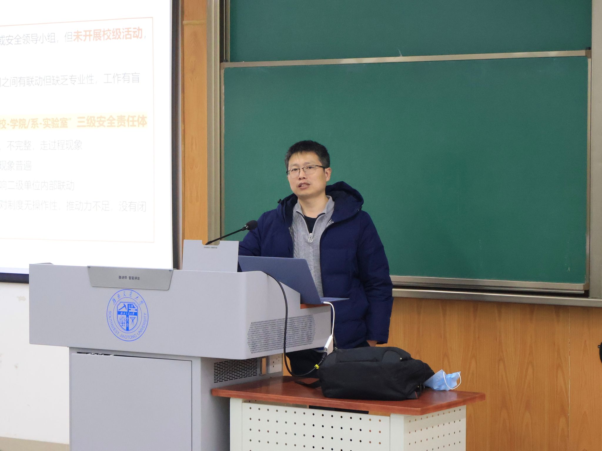 副院长马剑开展《实验室安全培训》主题讲座。2021级智能建造、智能制造工程、新能源科学与工程全体毕业生和2023-2024学年SRTP全体学生参会。