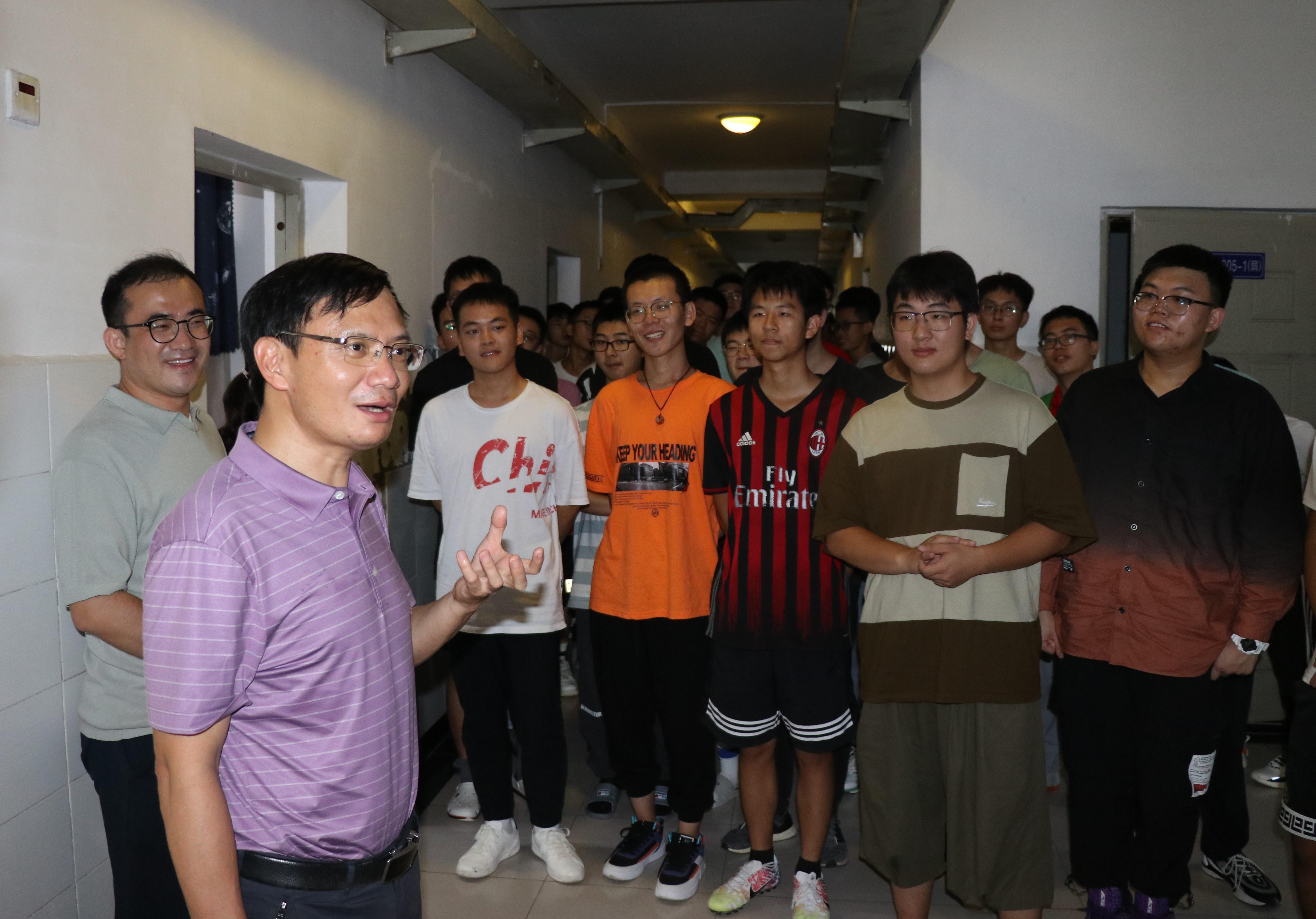 9月3日下午,学院何正友院长、罗妍妍副书记带领学生管理办公室全体老师和青年教职工走访2021级本科生寝室,看望慰问新生。