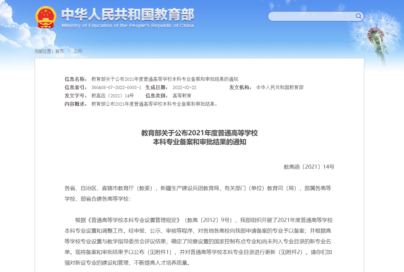 据悉,教育部在本科专业设置调整工作中,支持高校主动服务国家战略、区域经济社会和产业发展需要,设置符合办学定位和办学特色的专业;引导高校用好学科交叉融合的“催化剂”,推进新工科、新医科、新农科、新文科建设,增设文理、理工、医工等交叉融合的新专业。