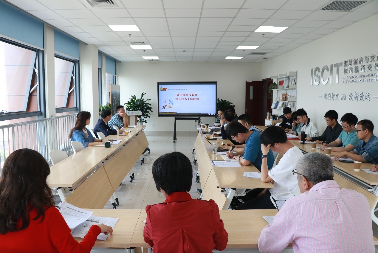 院长何正友结合自身工作经历和长期担任博士生导师的感悟体会,主讲《新时代高校教师职业行为十项准则》。他从世界正经历百年未有之大变局和我们党立足中华民族伟大复兴战略全局的背景和高度,强调了高等教育和高校教师的重要性,指出《准则》明确了新时代高校教师职业规范,针对主要问题、突出问题划定基本底线,是深化师德师风建设、打造新时代高素质教师队伍的重要举措。