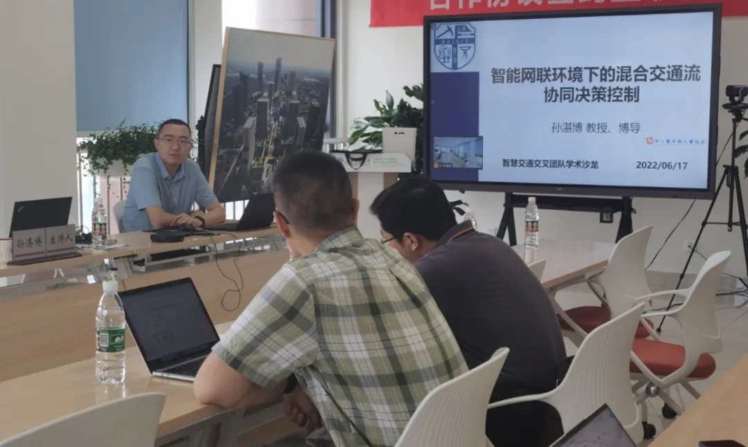 副院长孙湛博教授,以《智能网联环境下的混合交通流协同决策控制》为题,混合交通流协同决策控制问题为切入点,探讨了新型协同决策控制框架、基于微观路权交易的协同行为诱导机制、车辆轨迹规划与跟踪、跟驰行为异质性与车辆轨迹预测等内容。