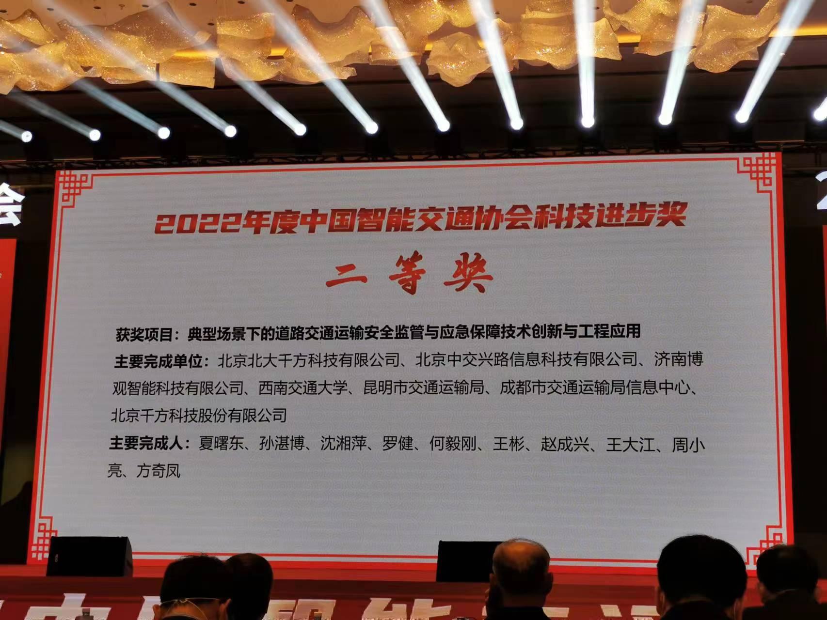 等单位作为主要完成单位、学院孙湛博教授等作为主要完成人的项目《典型场景下的道路交通运输安全监管与应急保障技术创新与工程应用》荣获2022年度中国智能交通协会科技进步奖二等奖。