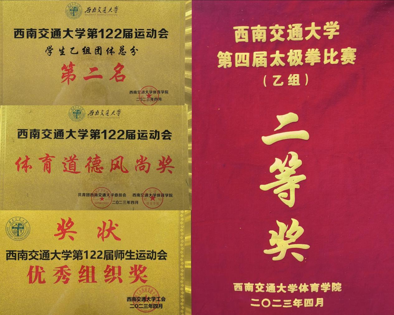 阳光正好春意浓,奋力拼搏恰青春!在4月15日闭幕的学校第122届运动会上,学院师生团结协作、奋力拼搏,取得学生乙组团体总分第二名、体育道德风尚奖、优秀组织奖、太极拳二等奖共四个集体奖项,实现首次参加校运会即收获大满贯。