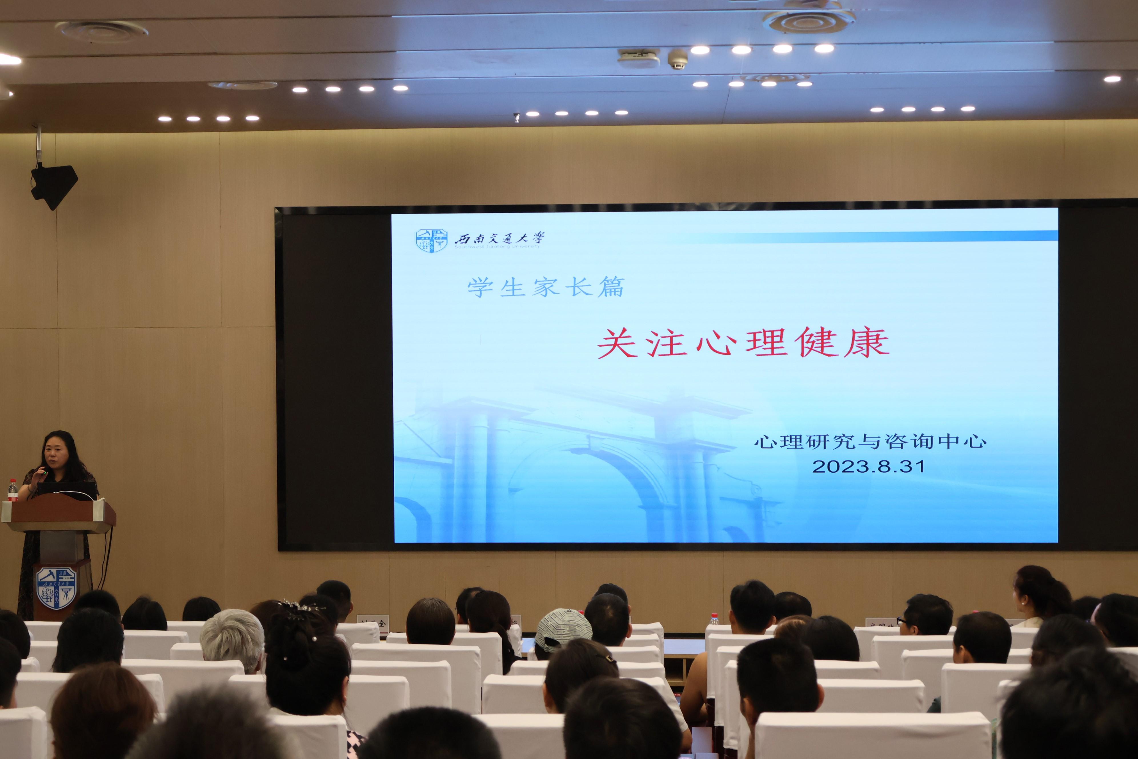 张学伟向家长们介绍了大学生心理障碍的常见表现及原因,并为家长提供亲子沟通技巧与相处策略。