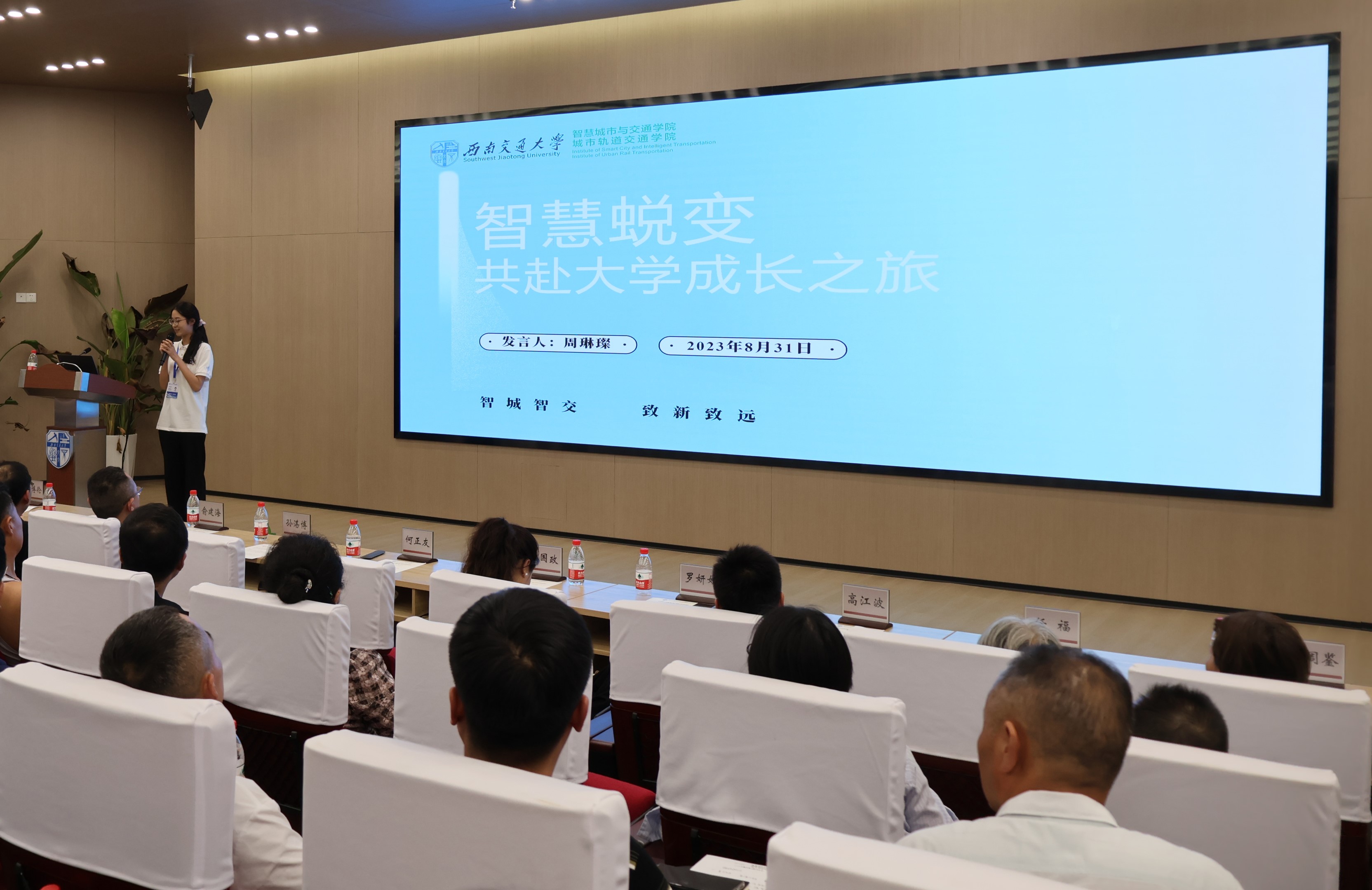 2022级智能建造1班周琳璨同学向全体家长分享了自己进入大学一年以来的成长蜕变,并鼓励学弟学妹积极参与各类活动,丰富大学生活。