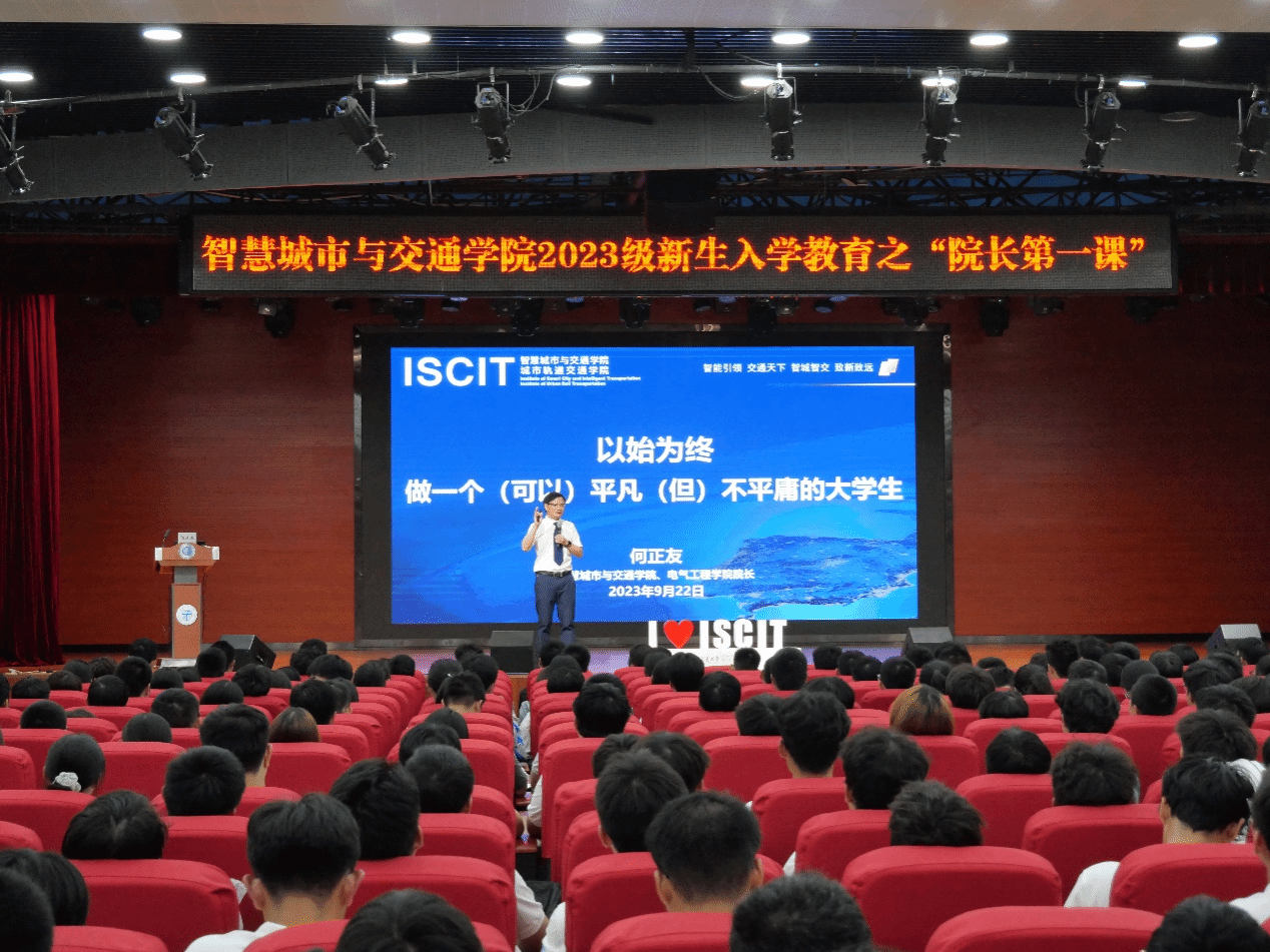 9月22日晚,学院院长何正友以《以始为终——做一个(可以)平凡(但)不平庸的大学生》为题,于犀浦校区大学生活动中心为学院全体2023级新生讲授“院长第一课”。