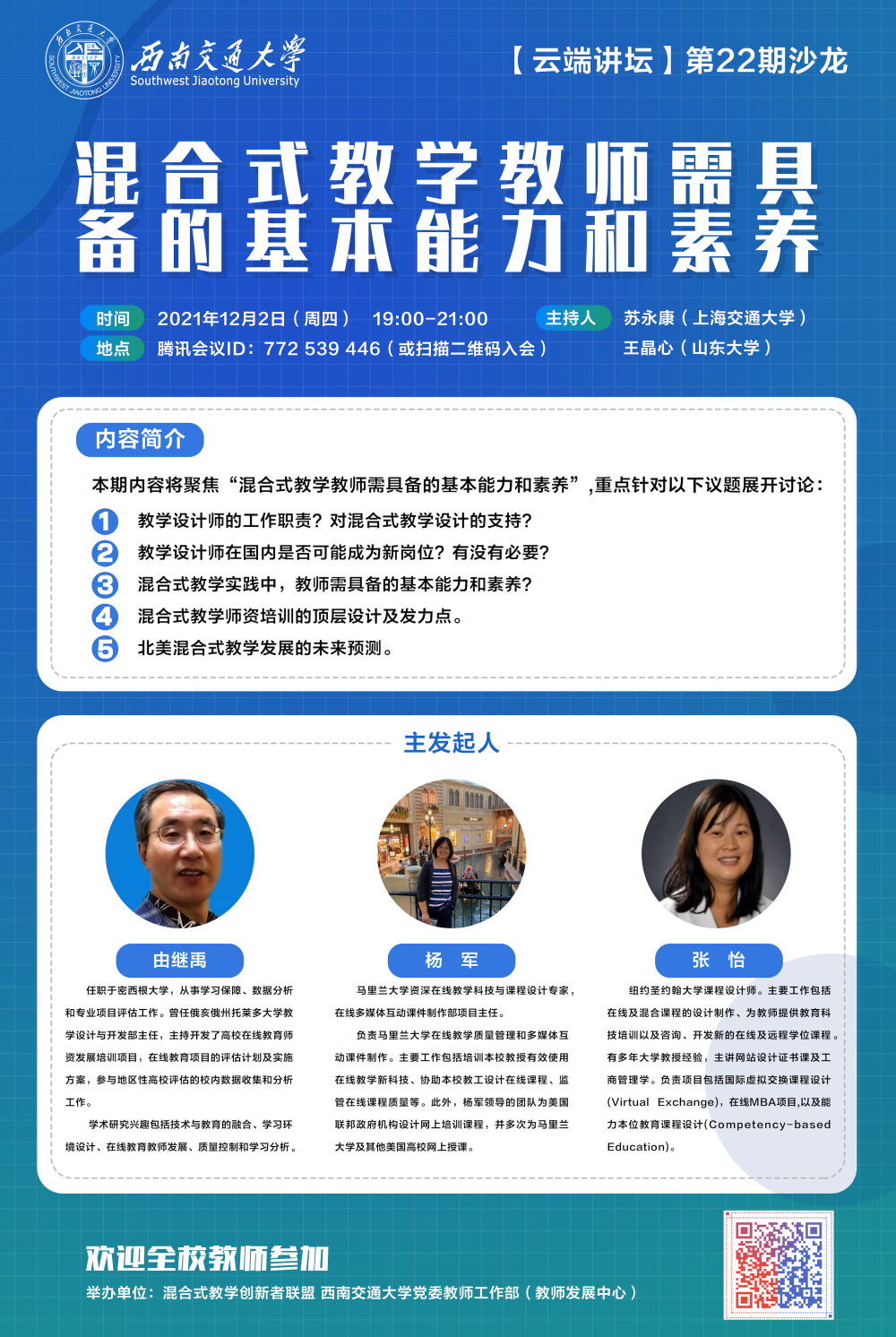 地点:腾讯会议ID:772 539 446(或扫描下方海报中二维码入会)