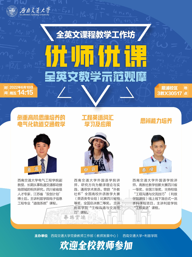 诚挚邀请全校致力于全英文和双语教学工作的老师们参加!