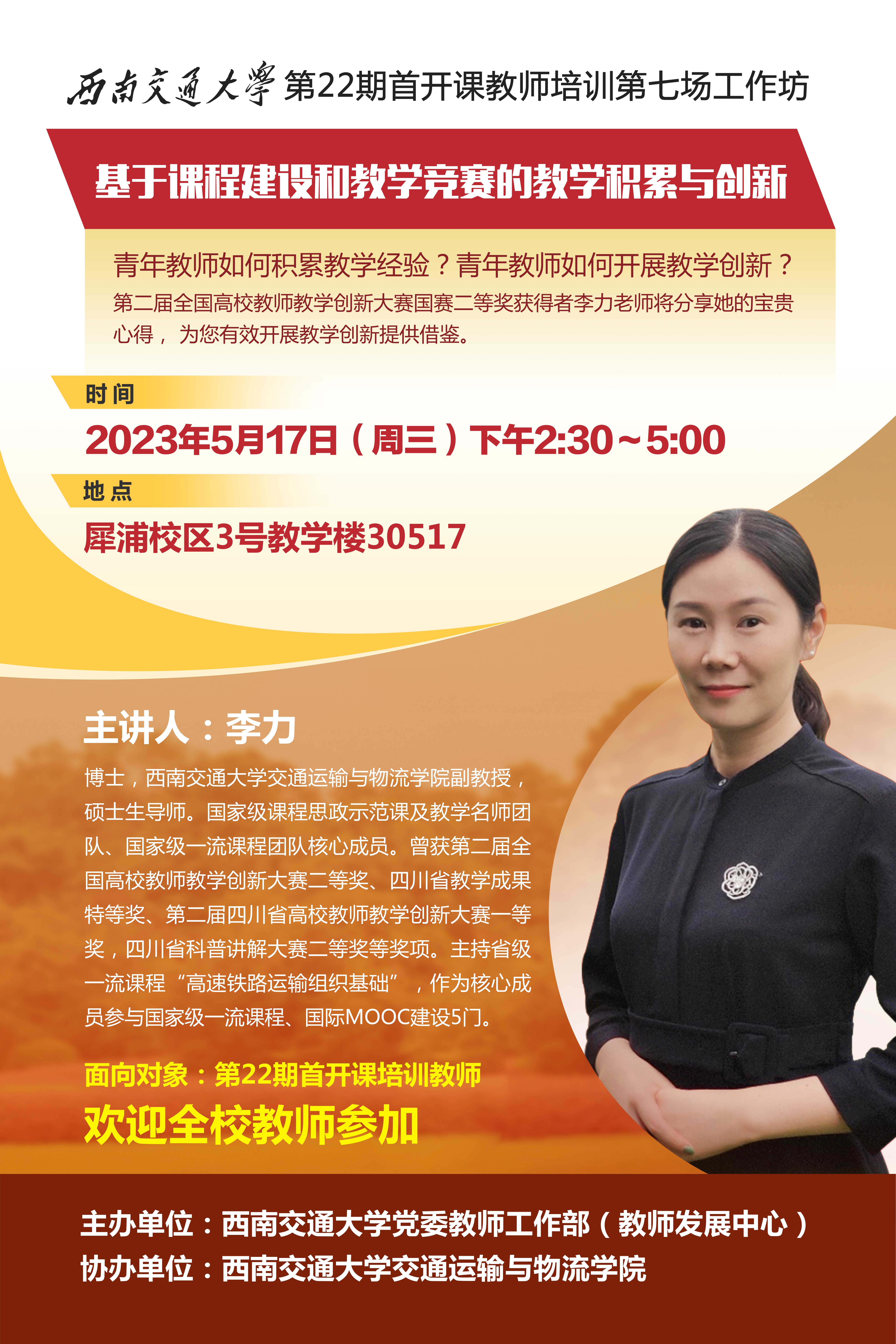 青年教师如何积累教学经验?青年教师如何开展教学创新?第二届全国高校教师教学创新大赛国赛二等奖获得者李力老师将分享她的宝贵心得, 为您有效开展教学创新提供借鉴。