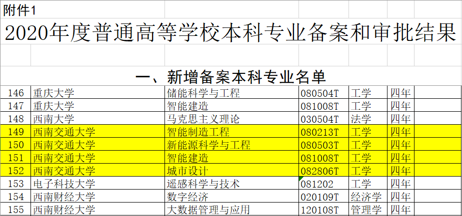 日前,教育部印发通知,公布2020年度普通高等学校本科专业备案和审批结果,依托智慧城市与交通学院申报的智能建造、智能制造工程、新能源科学与工程、城市设计四个本科专业成功通过备案审批。