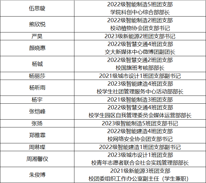 2022级智慧交通4班团支部书记