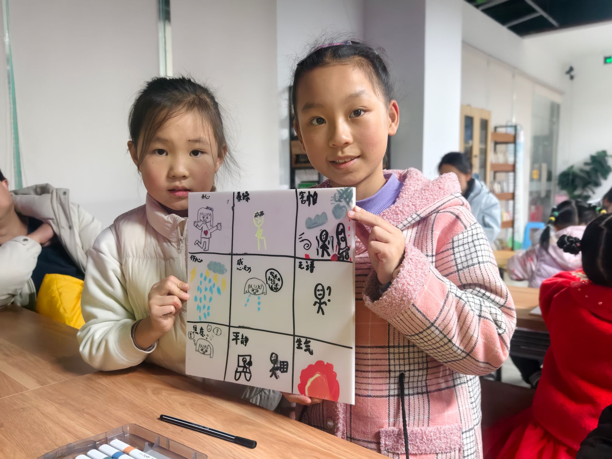 图 5、6 小朋友展示情绪九宫格