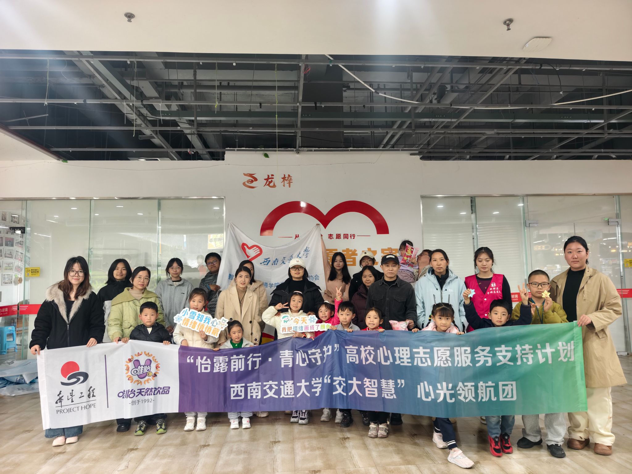 学子组成的“交大·智慧”心光领航团在四川省成都市郫都区中迪•星月里商业广场负一楼开展“跟着‘小雪’藏起来—情绪管理小课堂”主题活动。