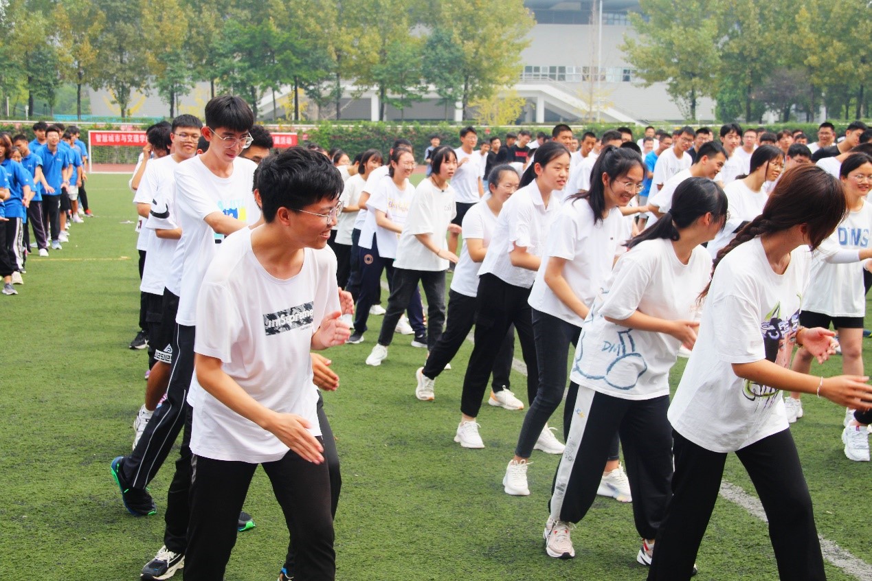 在热身活动中,大家跟随着音乐的节奏,尽情地演出了一曲“拖拉机舞”,同学们之间的关系得以更加亲近,同时也寓意大家的学习生活会像拖拉机一样轰轰烈烈。