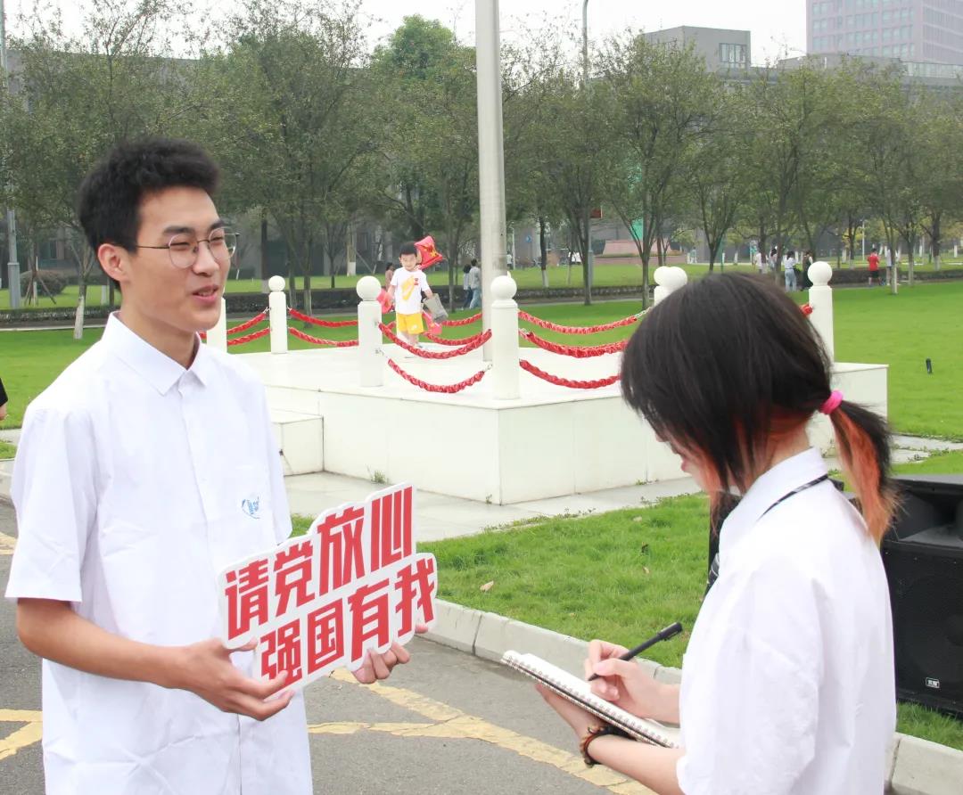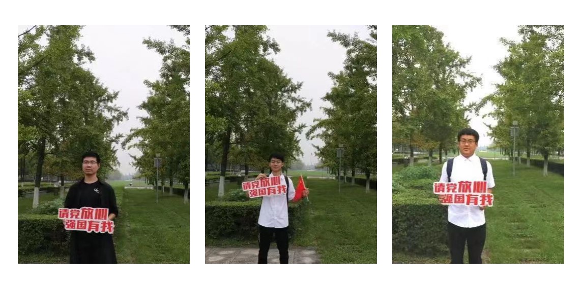 2021级新生,在中华人民共和国成立72周年之际,我们在此许下青春的誓言:我们誓将个人命运与国家命运结合起来,做社会有用之人,做中国有为青年!请党放心,强国有我!奋斗正青春!青春献给党!”