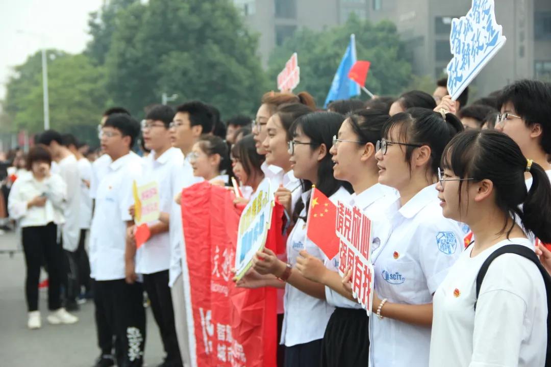 的师生聚集在犀浦校区东门国旗台下,庄严肃穆地等待着仪式开始,怀着激动的心情为祖国庆生。