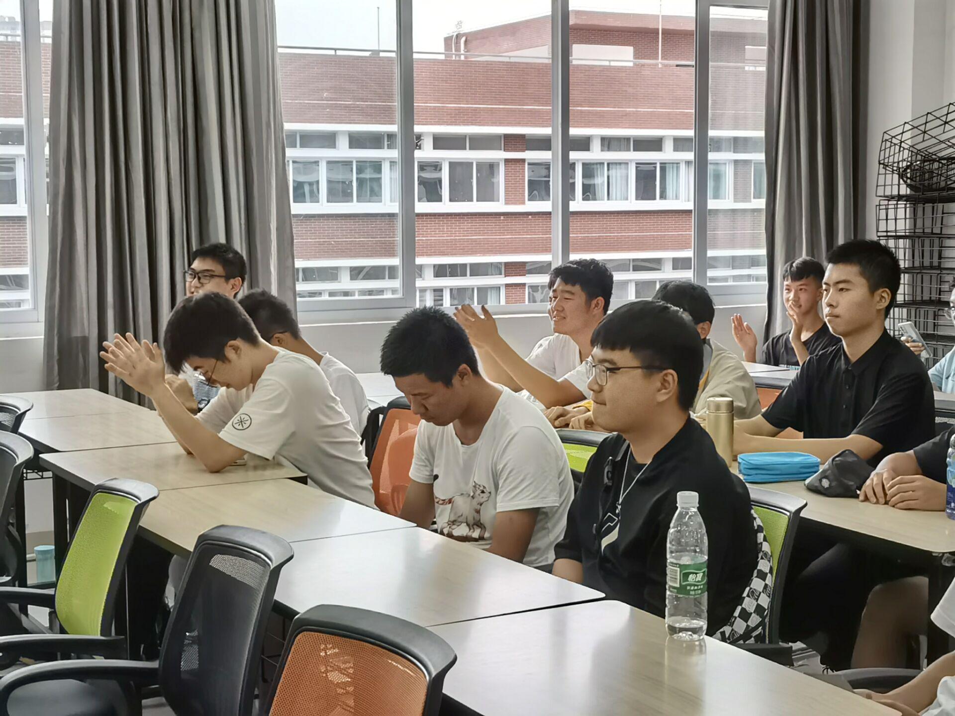 下午四时整,吴婷婷宣布团课学习开始。在吴婷婷的组织下,全班同学富有激情而庄重地演唱了《光荣啊,中国共青团》。随后组织委员徐浩然上台宣读《致四川学子的一封信》。同学们认真聆听记录,目光中透露出不负组织殷切期望的决心。