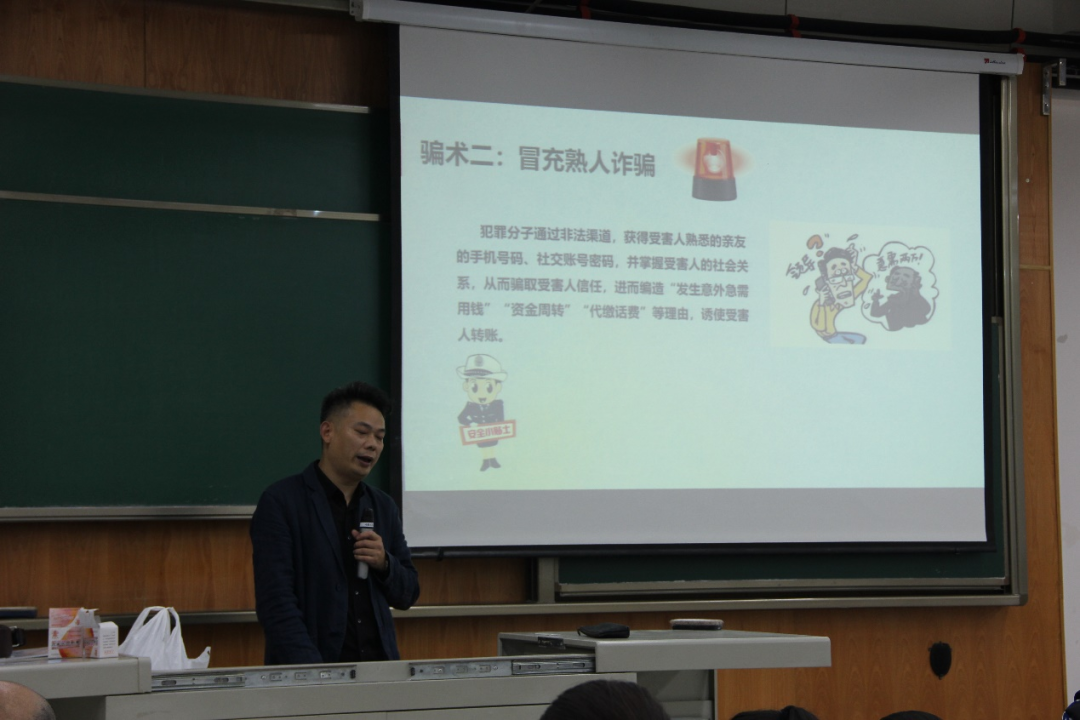 平安校园,安稳保障。为增强新生的安全意识和自我防范能力,2021年10月11日,学院邀请党委保卫部治安科副科长徐晓辉老师和党委保卫部消防科李为群老师为全体新生开展校园安全主题教育讲座,以身边实例为同学们开展了一堂生动的安全教育大课。安全无小事,防患在平时。2021年9月-10月,学院积极组织新生以班会形式集体学习反诈知识,动员全体新生主动签署防范电信网络诈骗承诺书,自觉下载“国家反诈中心”APP;引导新生参与“安全微课”学习,提高新生安全防范意识和应对突发事件的能力。