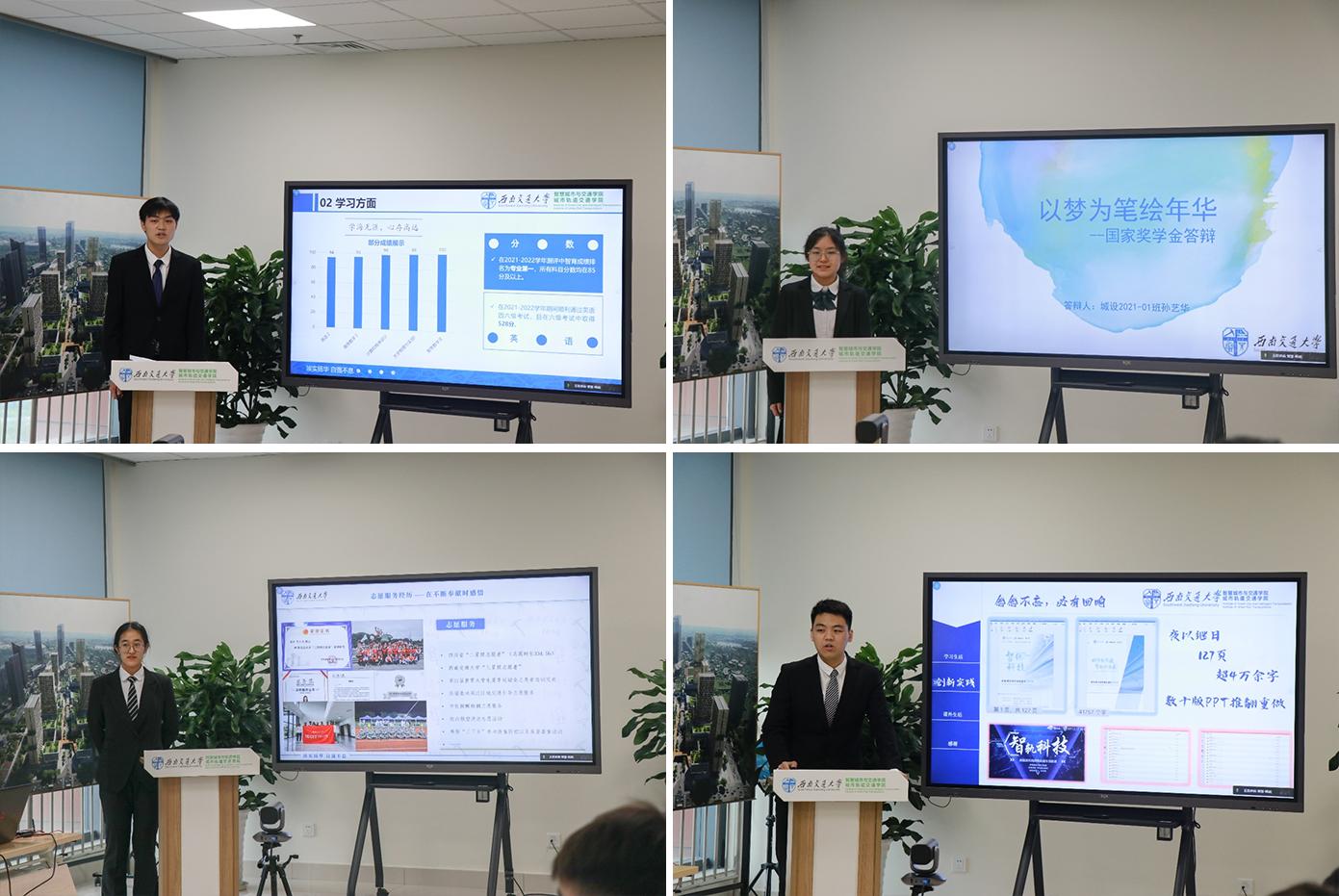 为充分发挥优秀学生的示范引领作用,激励全体学子奋发拼搏、创先争优、德智体美劳全面发展,9月26日下午,学院在X31641举行2021-2022学年国家奖学金答辩评选会。学院党委副书记罗妍妍、副院长孙湛博、人才培养办公室主任代宁、综合办公室主任高江波、学生管理办公室主任夏夏、班导师代表胡海涛、文扬东,辅导员代表于博伦、敬春元等9位老师作为评委参与评审,14位候选人进行了答辩展示,各年级学生线上观摩。评选会由学院团委书记于博伦主持。
