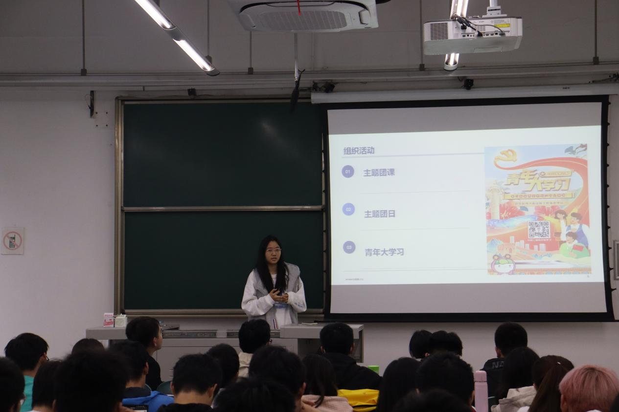 接下来由智能制造2021-02班团支书王少宁进行团支部工作介绍,她指出要有具体的工作计划和规划,对组织的团课和团日活动进行充分的准备,更要重视活动和记录的规范化。