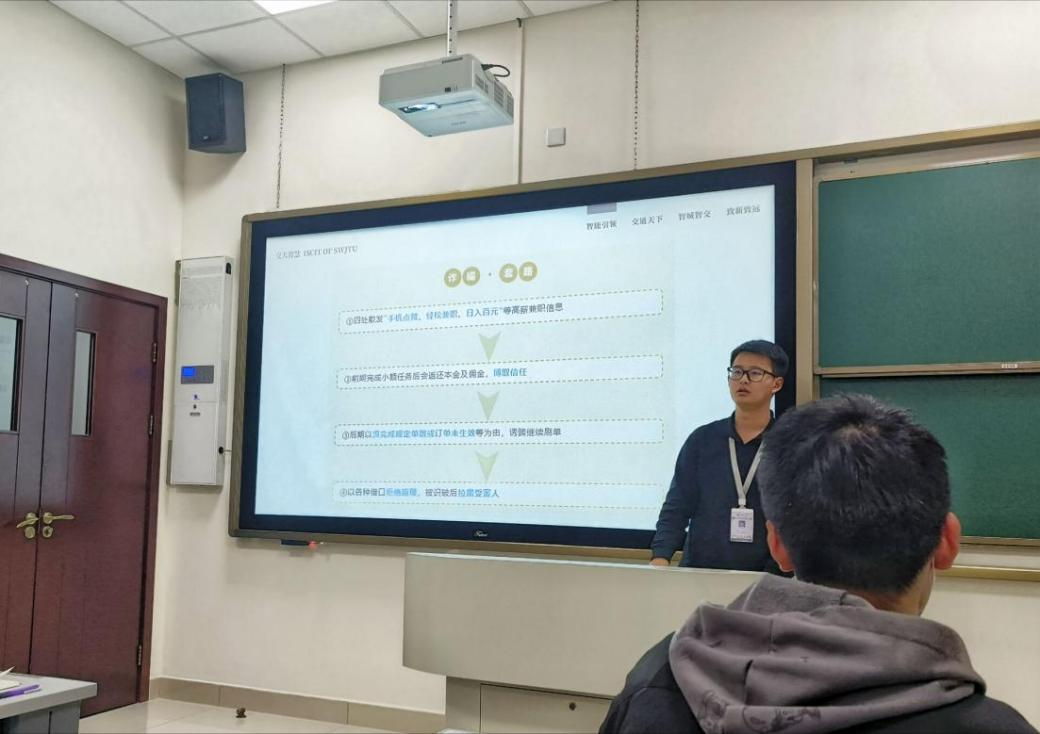 杨斌主要从电信诈骗的界定、电信诈骗的常见形式、如何防范电信诈骗以及被诈骗之后的补救措施这四个方面展开讲解。为同学们介绍了校园里常见的诸如冒充熟人诈骗、网络刷单诈骗、兼职诈骗、以学习及培训等事件为由向学生或者家长行骗等不法分子惯用的伎俩和手段。同时,他结合多个发生在学生身上的真实案例,提醒同学们:骗局就潜伏在你我身边,在日常生活中不要贪图小便宜;一旦遇到电信网络诈骗,要时刻保持理智的头脑,不熟悉的问题及时求助辅导员;已经造成损失的要及时向公安机关报案。同时告诫所有同学树立正确的价值观和消费观,抵制诱惑,将精力更放在学习上,充分利用大学时光提高自己的能力和素质。