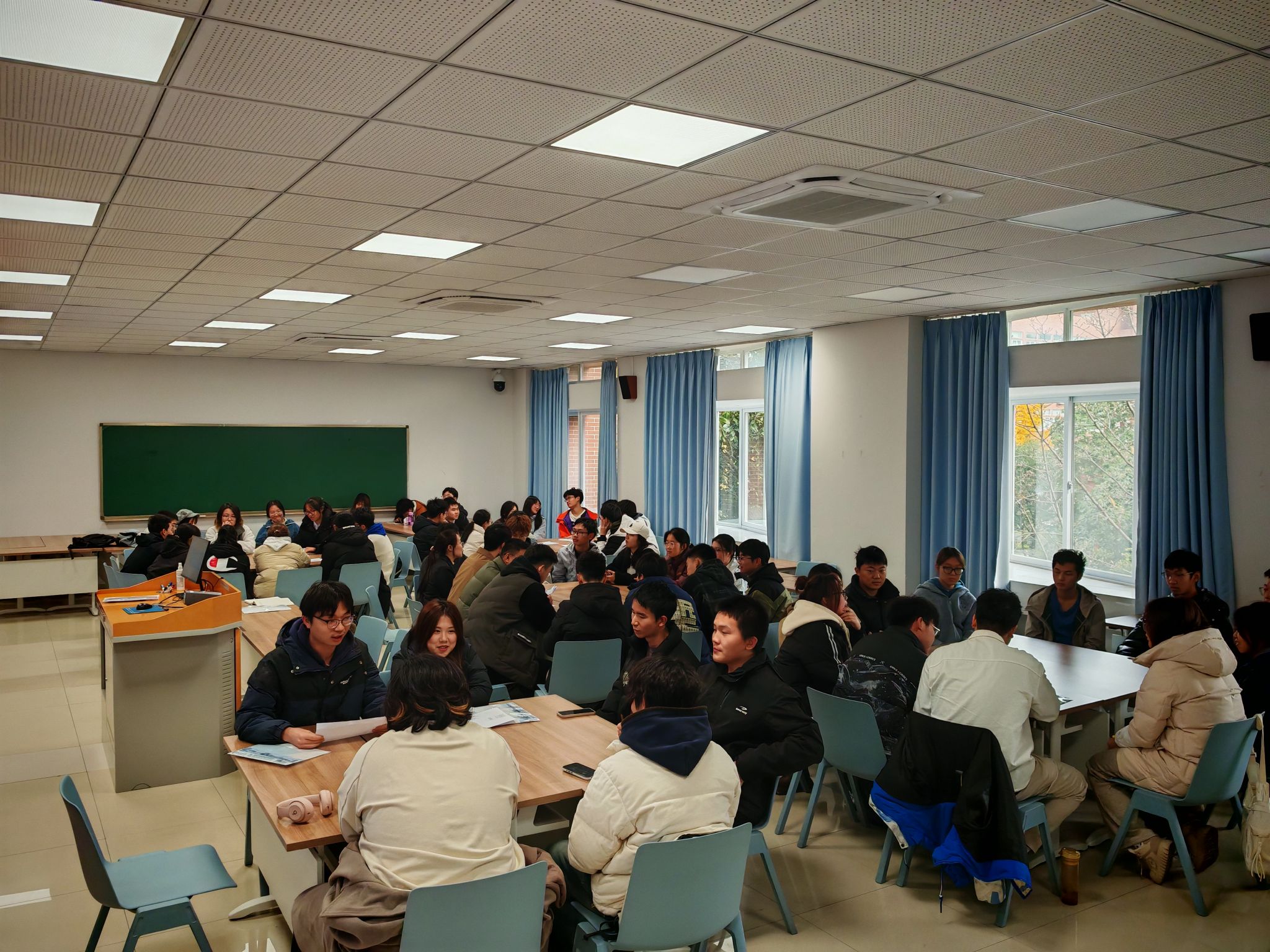会前,学院学生会和学生党支部调研收集了关于班风学风的共性问题,如“如果你的班级里有同学整天沉迷游戏,不想学习,你作为他的同学,你会怎么做?”。同学们积极展开讨论,现场氛围活跃。同时,这也引发了同学们对于班级建设、同学关系以及学习态度的深刻思考。