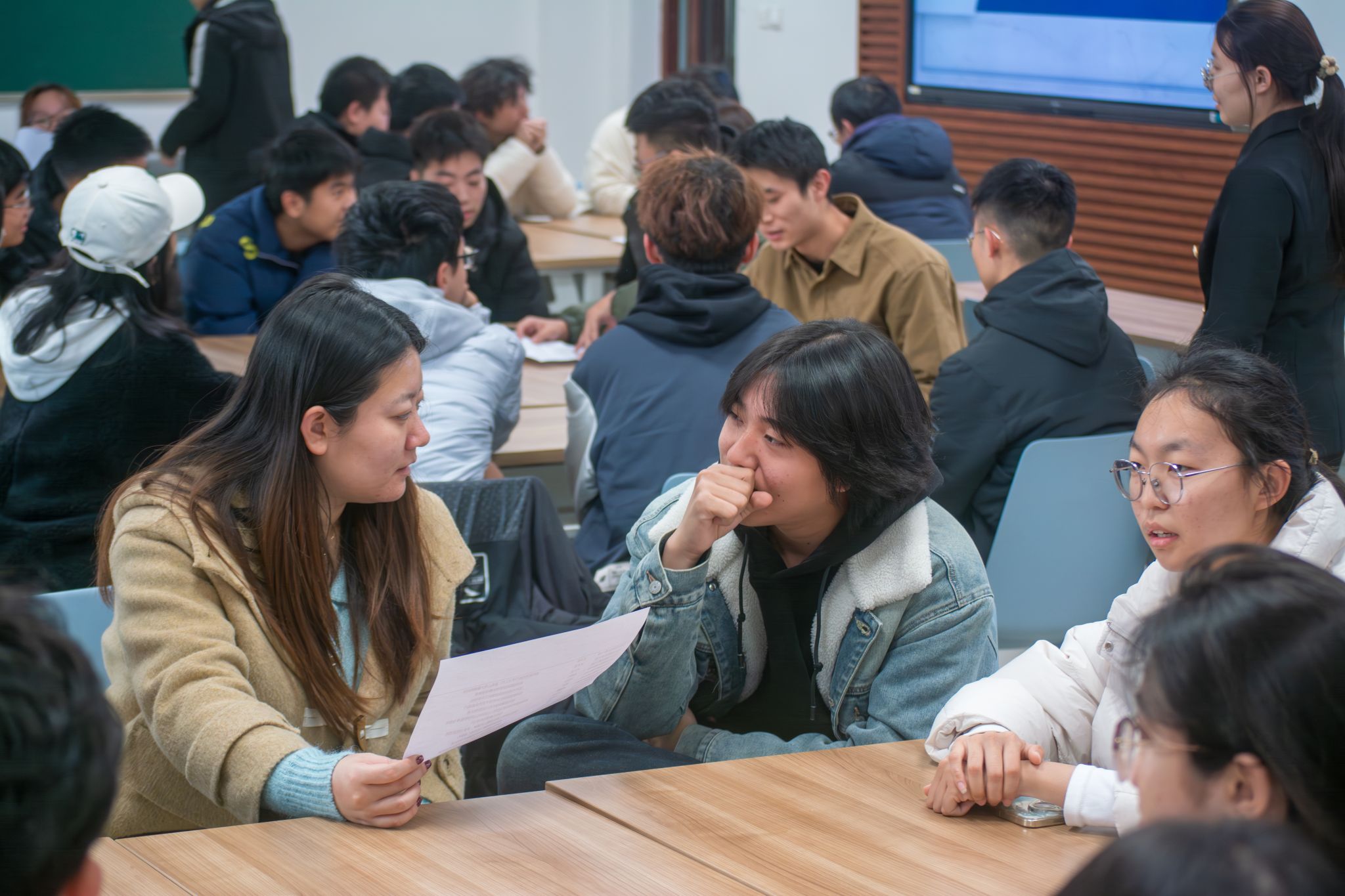 在朋辈圆桌讨论环节中,班委们围绕班级协调管理、班级凝聚力建设、班级学风建设、互助帮扶等内容进行小组讨论,高年级优秀班集体班委代表做出了细致的回答和分享。在讨论交流的过程中,同学们各抒己见、畅所欲言,相互汲取宝贵的学习经验,展现了同学们对于共同营造一个积极向上、和谐融洽的班集体的热情与追求。