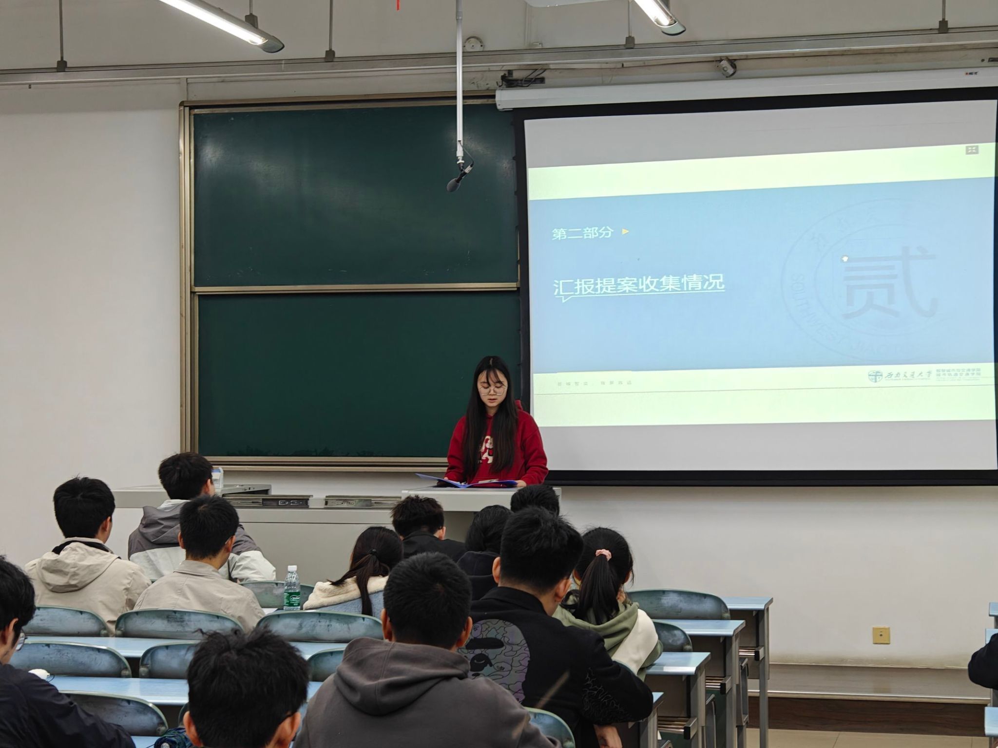 于11月13日晚在X2323召开第四次权益大会。学院团委副书记敬春元、2023级本科生辅导员刘礼钊以及各班权益生活委员参加。会议由学院学生会权益实践部工作人员刘锦欣同学主持。