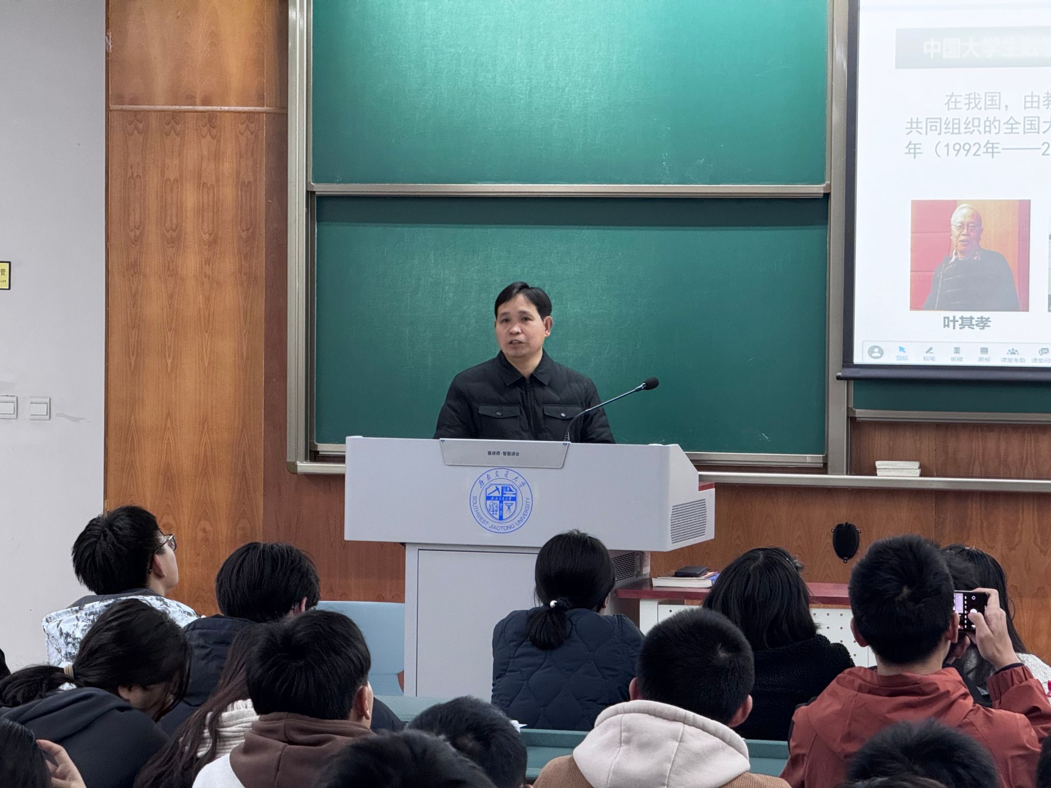 全国大学生数学建模竞赛主题讲座由徐昌贵老师主讲。徐老师结合近年赛题,对数学建模赛事的流程、奖项设置和参赛要求进行了细致讲解。他重点剖析了如何利用数学模型解决实际问题并强调了团队协作在数模竞赛中的重要性。