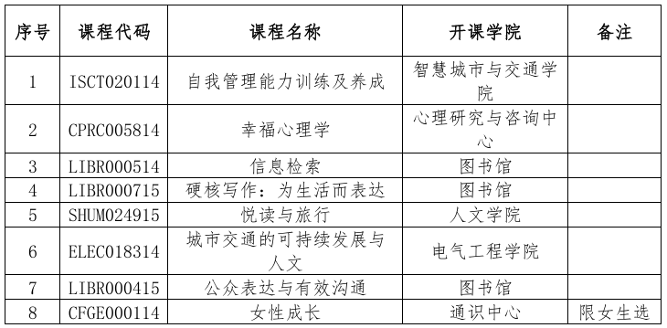 注意:选课时注意一下课程开课校区,如跨校区选课,需自行协调,合理安排上课时间,以免影响课程考评。