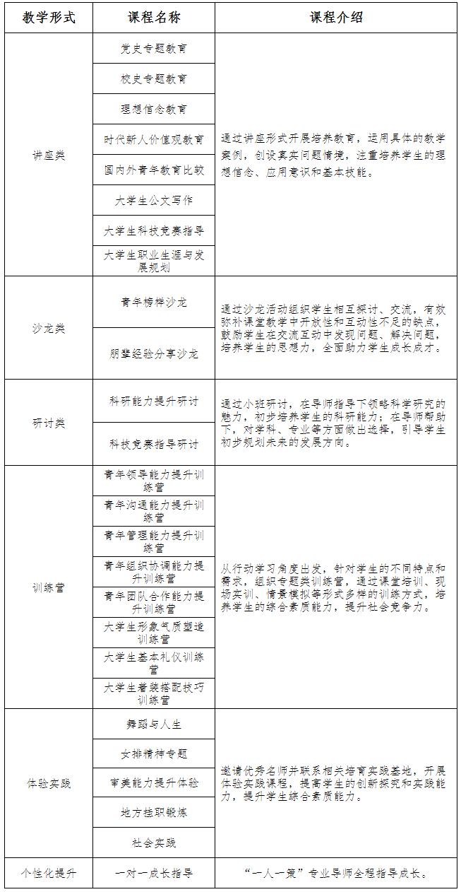 注:课程形式与课程名称不局限于课程表
