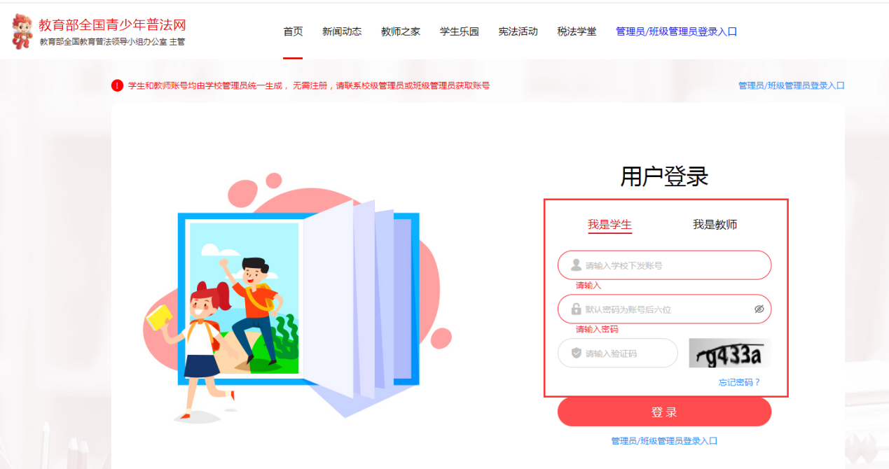 (一)登录教育部全国青少年普法网//qspfw.moe.gov.cn/index.html(用户名:手机号,初始密码:手机号后六位,用户名错误请联系杨斌老师),开始学习和测验。