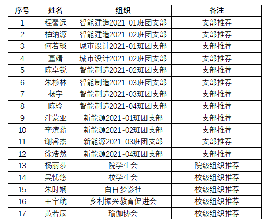 委员会关于开展2022年度共青团工作表彰的通知》要求,2023年3月13日-21日,学院团委对校级(院级)示范团支部、“十佳”团支部书记、优秀共青团干部、优秀共青团员拟推荐人选开展了评审工作。经个人申报、组织推荐、团建服务中心资格审查,学院团委综合评审,现将拟推荐名单予以公示: