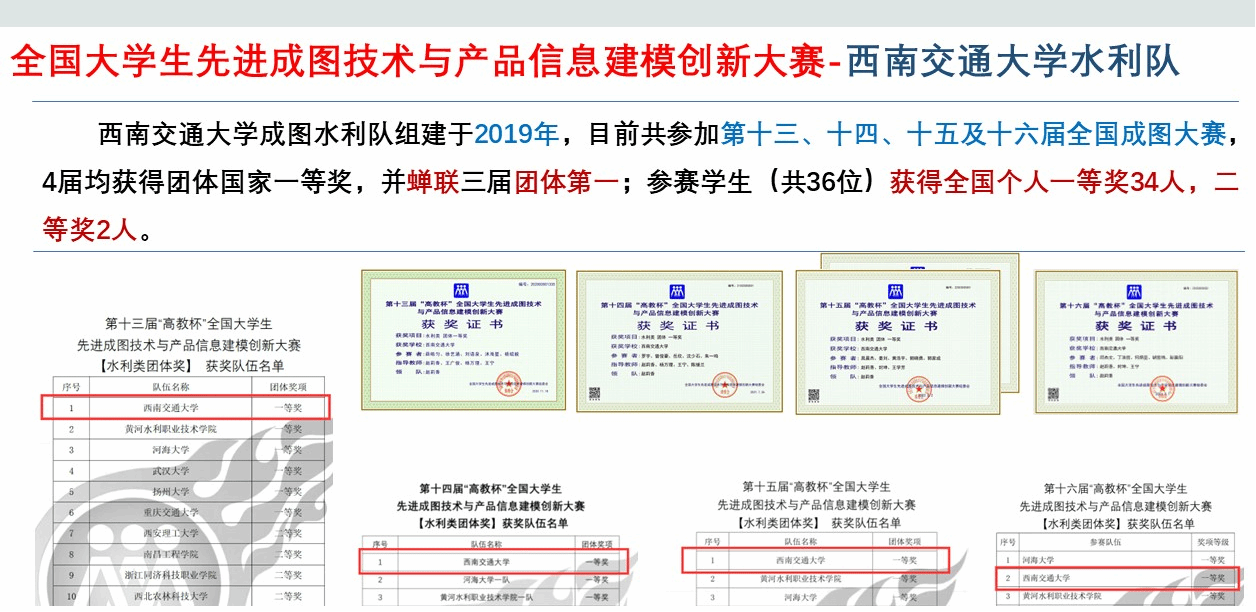 水利队连续参加了第十三至十六届先进成图大赛,成绩如下: