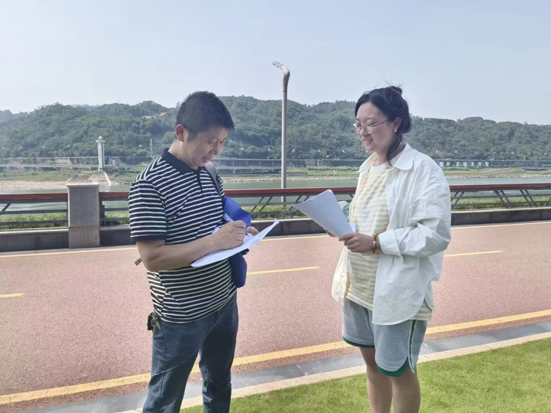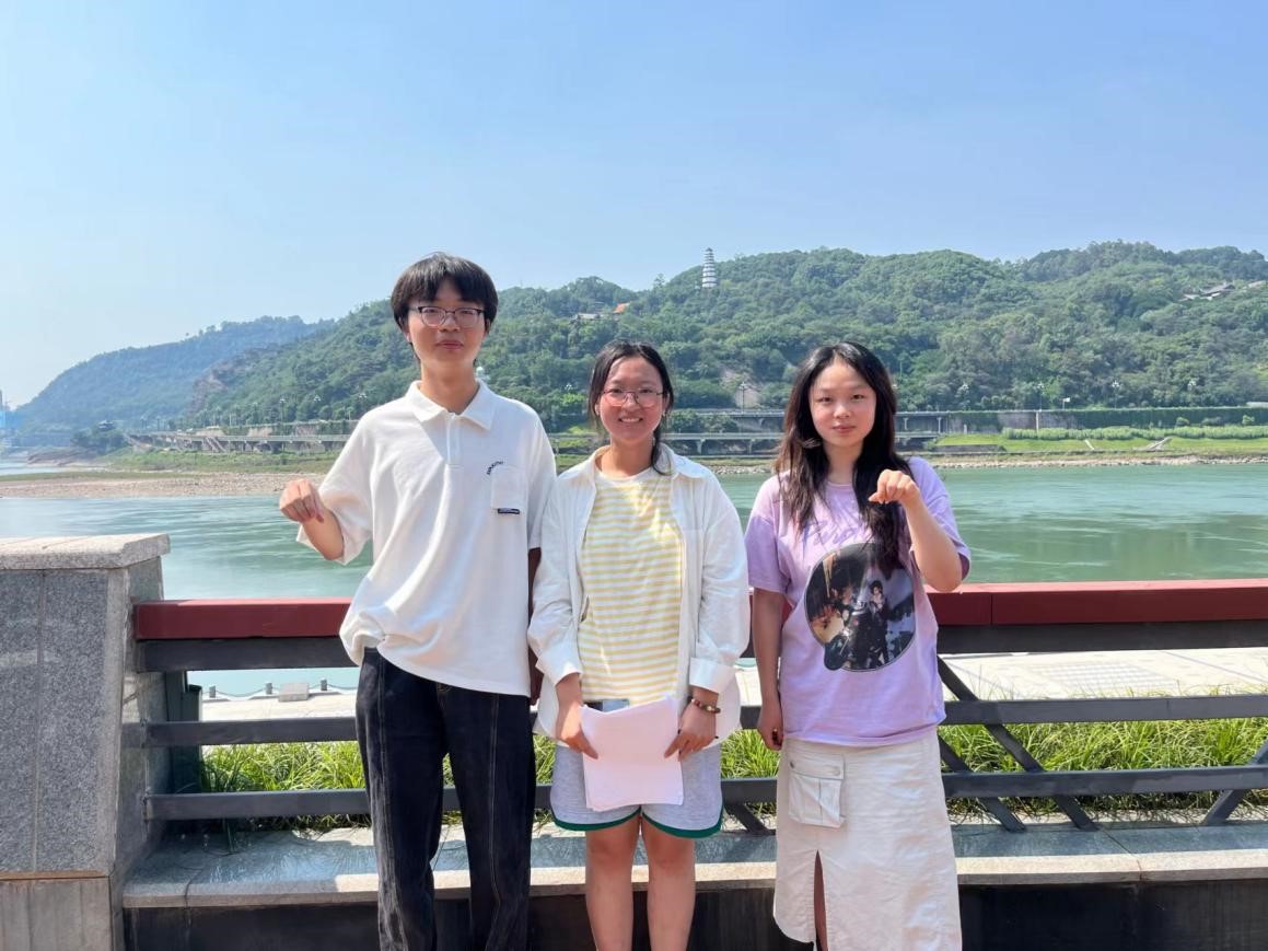宜宾三江口,是长江、金沙江、岷江交汇处,长江至此始称“长江”。我们的实践队员驻足此地,览三江合流,眺大江东去。与此同时又向当地居民发放了调查问卷,向居民了解到了更多有关三江口的信息,使队员们更好了解到了其治理发展情况。同时居民们都表示“江水越来越清澈”“环境越来越优美”,这些也都得益于党和国家的大力支持与帮助。