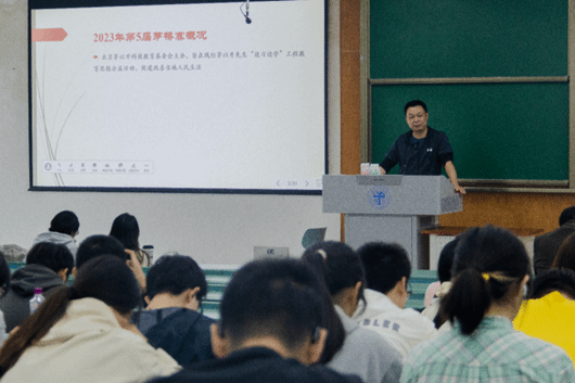 首先,夏嵩老师就“茅以升公益桥——小桥工程”创新设计大赛向同学们介绍参赛事项、参赛情况以及参赛要求,以往届参赛获奖作品为例具体分析了竞赛方向。