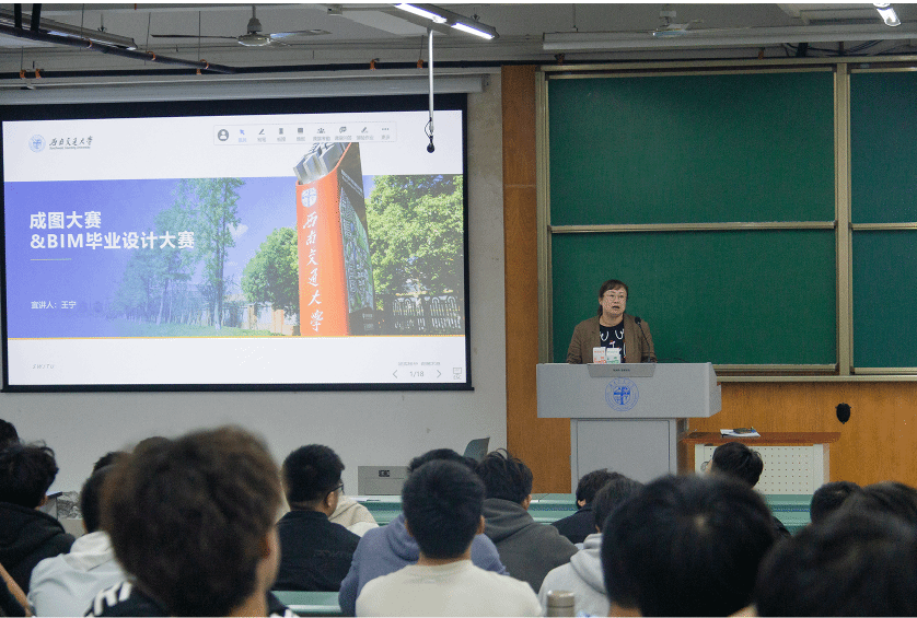 最后,王宁老师进行了成图大赛以及BIM毕业设计大赛竞赛介绍与指导,强调这两项竞赛在校内已有较完善的竞赛指导体系,鼓励同学们积极参与,敢于尝试,有所突破。