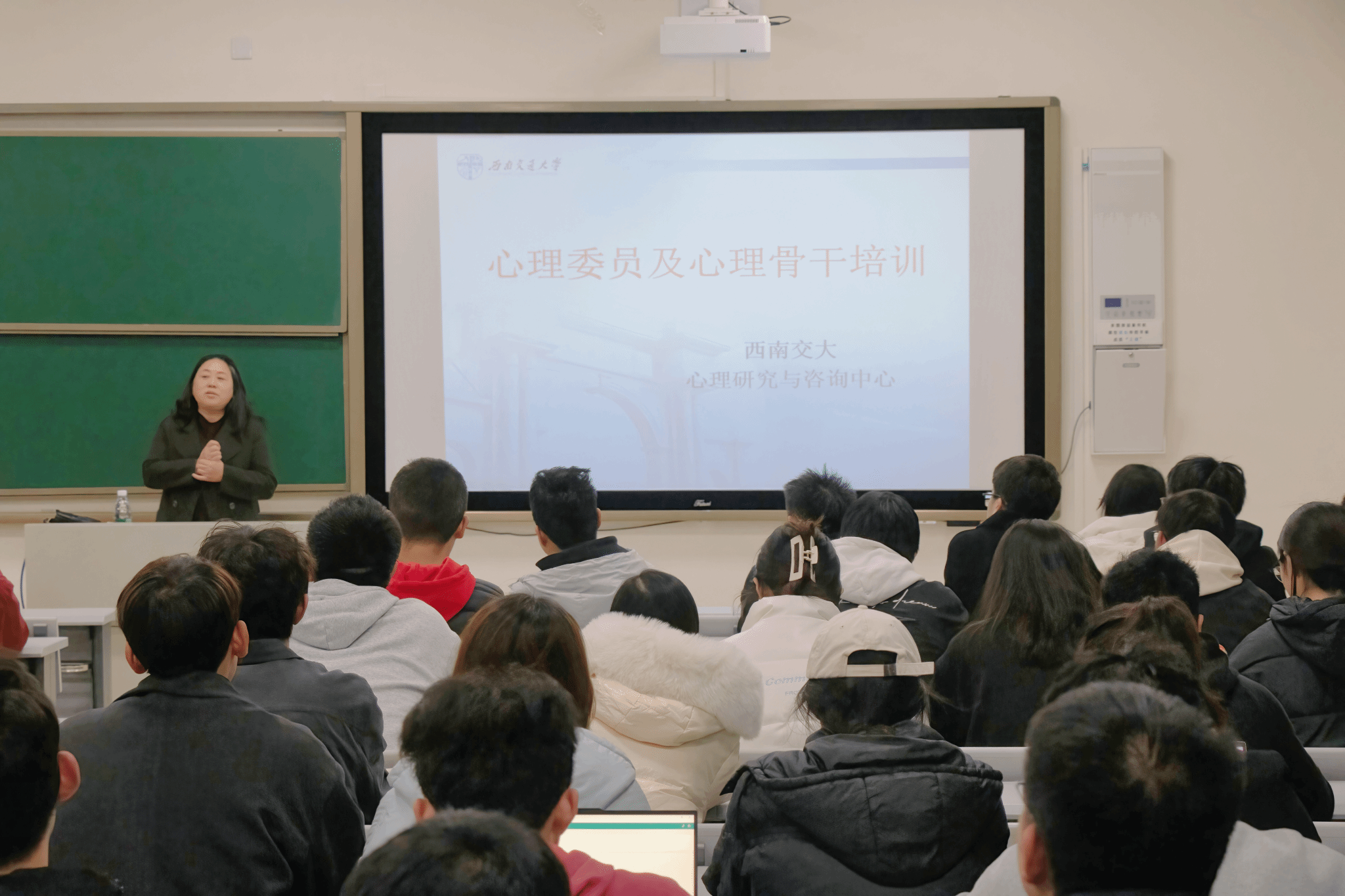 张学伟老师详细讲解了心理骨干的工作内容以及大学生频发的心理问题。班长和心理委员需要提升沟通能力、培养识别心理问题的能力并积极参与心理危机的干预工作,在日常生活中留意识别班级同学心理健康问题,做到及时报告。