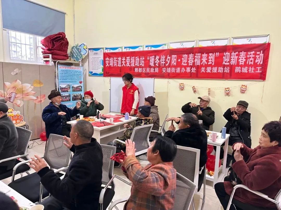实践队走进安靖街道的安靖关爱站,为社区老人开展志愿服务。组织策划迎新春活动,和社区老人一起开展春节手工艺品制作,并且开展了老人权益保障法知识普及以及禁毒知识讲座。实践队还前往了喜安社区和林湾村走访慰问社区老人,开展贴春联和挂灯笼活动。