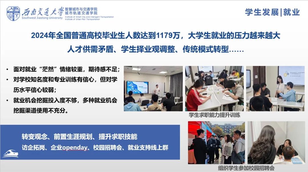 随后,夏夏围绕五育并举、三全育人介绍学院人才培养情况,重点分享学院在促进学生就业深造方面的具体举措。学院高度重视人才培养质量,全体教职工共同参与,今后将持续做好学生生涯规划教育,精准施策、分类指导,对于不同发展意向学生开展针对性指导。此外,夏夏宣贯第二学士学位教育工作。